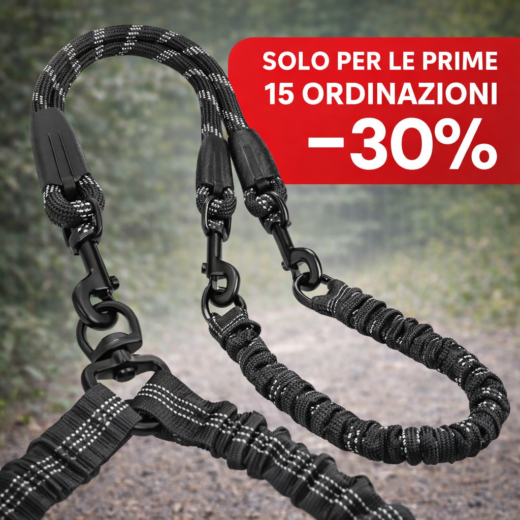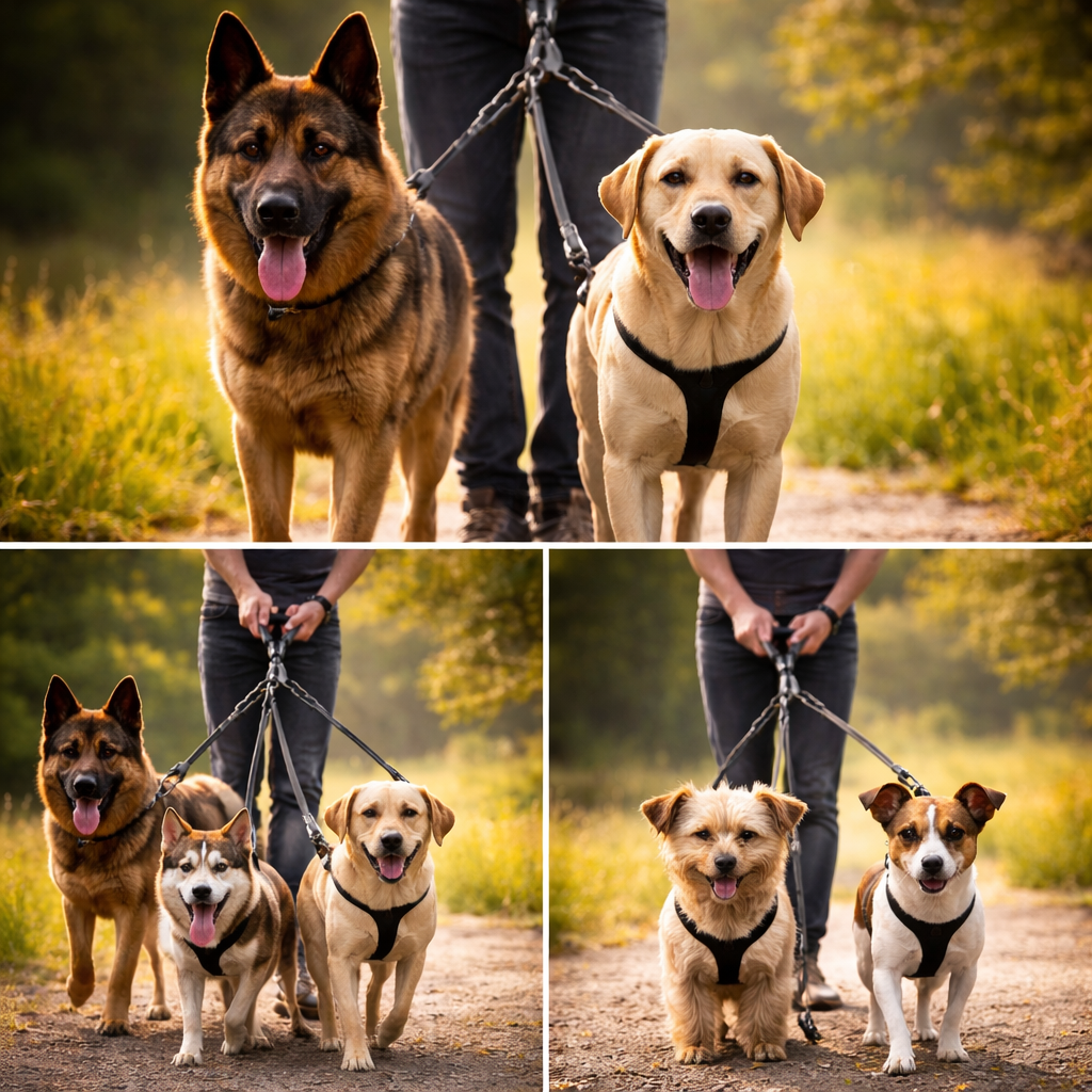 Questo evita che la forza di un cane si trasferisca direttamente all’altro o a te, mantenendo maggiore equilibrio e controllo.