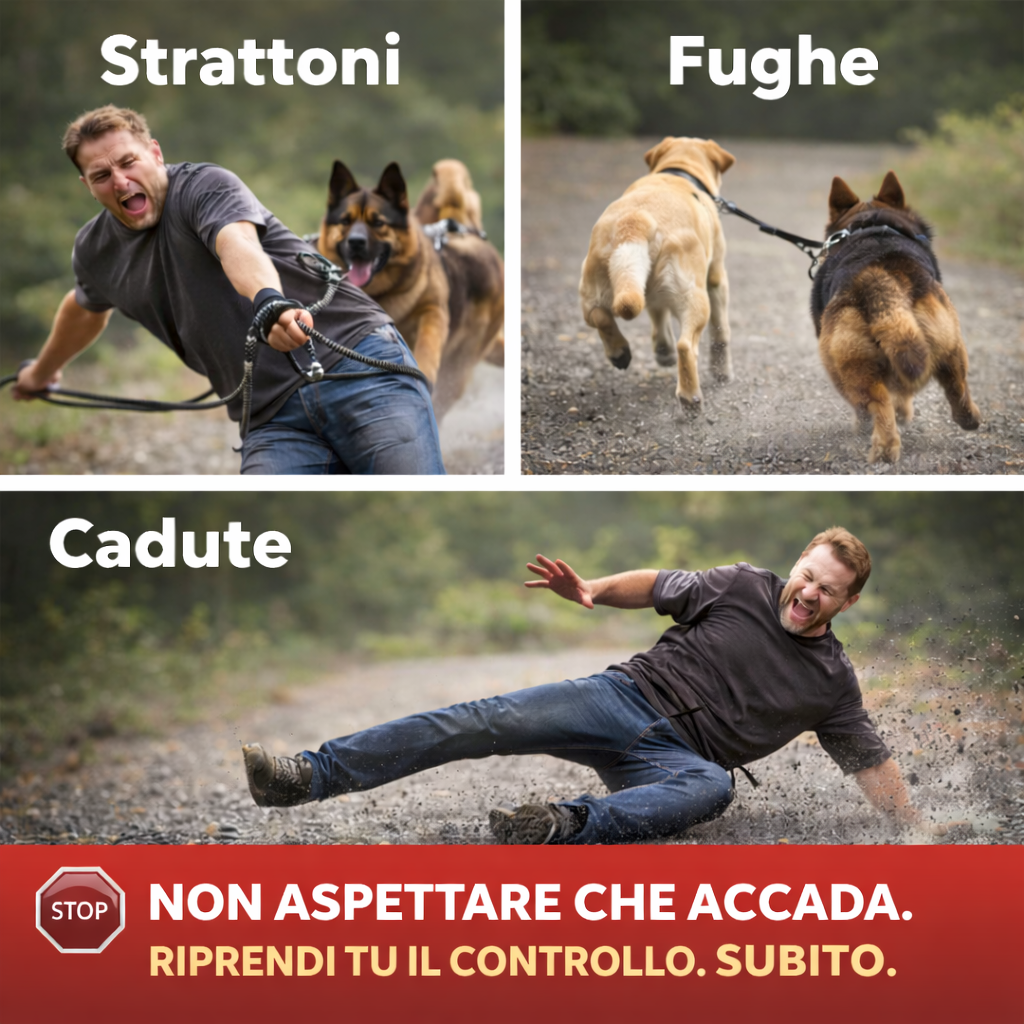 Il suo scopo principale è ridurre il rischio per chi conduce i cani: meno strattoni improvvisi, meno perdita di equilibrio, meno stress su braccia, spalle e schiena.